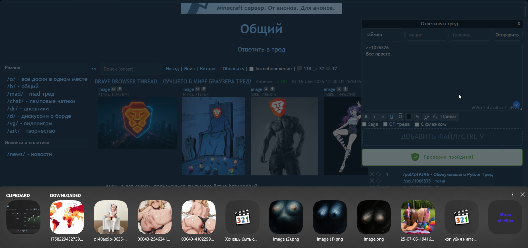 >>1076389 >Brave — это браузер-«рекламная платформа». «Sponsored Images» лезут в новый таб (каждый четвёртый по умолчанию), плюс свои Brave Ads за BAT-копейки. Ну вы поняли: «приватность, но с рекламой». Ты скозал? Тогда не удивительно, что ты высрал такую хуетень. >платный «браузерный VPN» за $9.99 в месяц. В Zen VPN не продают — ставь любой нормальный аддон или системный клиент и катайся. Троллинг тупостью? Будто в брейв невозможно поставить расширение ВПН'а. >«Ой, мы случайно подменили адреса партнёрскими рефами»: автодобавление аффилиаток к биржам и извинения постфактум. Обоссан в шапке треда. >Tor-окно» в Brave уже ловили на утечках .onion-запросов мимо Tor — фиксы выкатывали, но осадочек остался. Для анонимного серфинга лука существует Тор браузер, слыхал? Это, кстати, единственный не каловый браузер на геко. >Manifest V3 душит нормальные блокировщики на всём хромиуме. Нейробред.