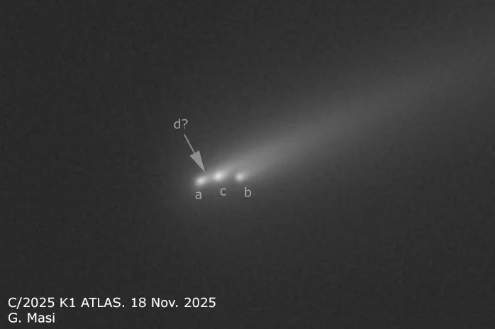 Это уже третий раз как эта межзвёздный объект меняет цвет. В июле эта комета была красноватой, затем, в сентябре она стала зеленеть, теперь стала голубой.