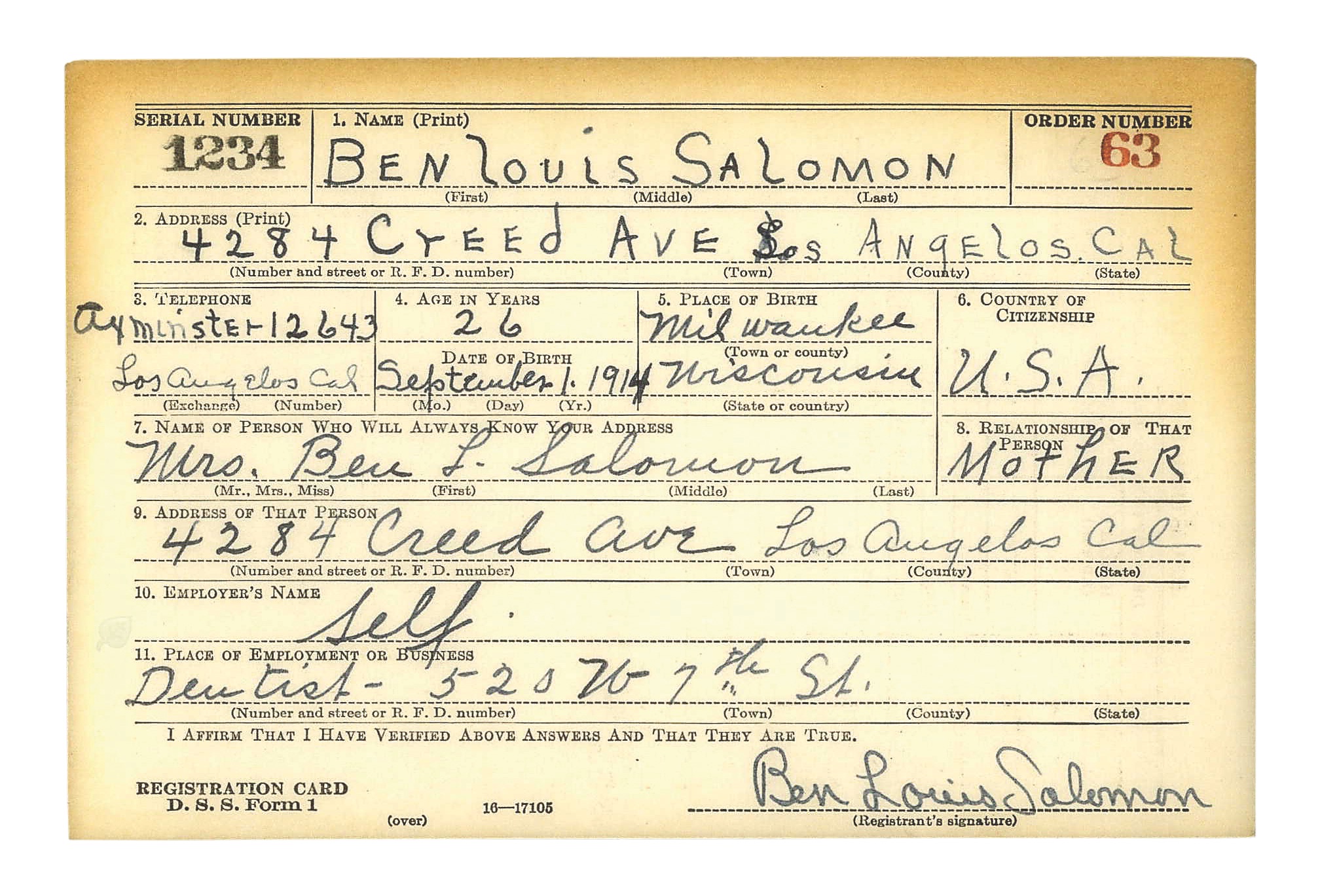 Бен Льюис Саломон, единственный ребёнок в еврейской семье, родился в Милуоки (Висконсин). Высшее образование получил сначала в Милуоки, а затем в университете Южной Калифорнии, который окончил с дипломом зубного врача в 1937 году.