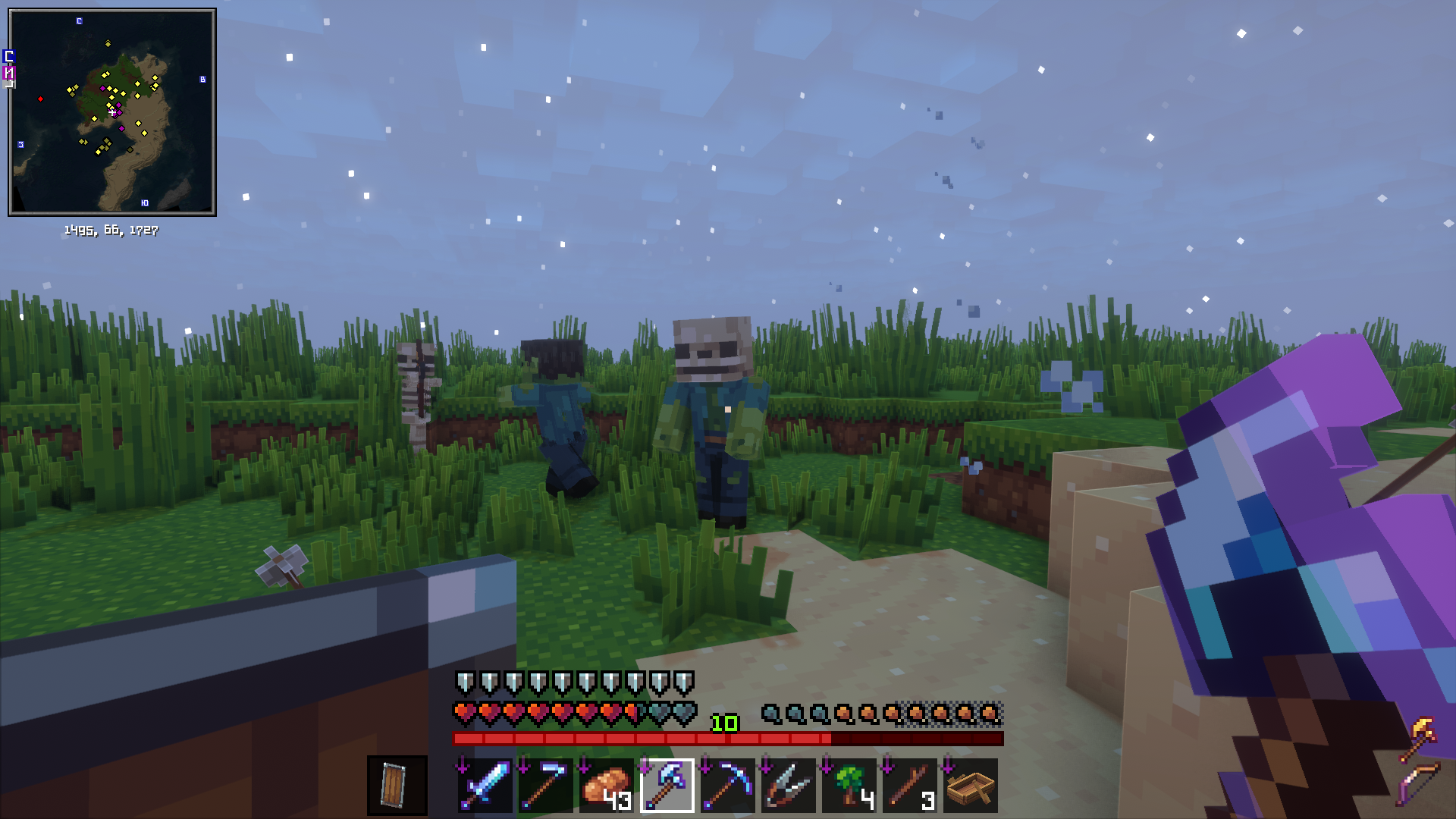 Единственные два мода, которые сильно повлияли на геймплей - это измение чар (напр. вместо обычной остроты на мече есть зачар на заморозку) и что мобы становятся сильнее каждые 10 дней