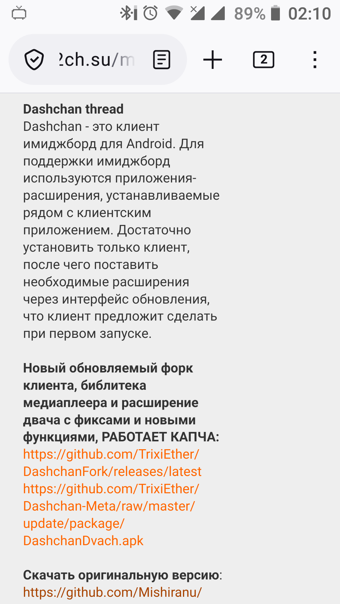 >>1149892 >Проиграл с пикрила. И эту хуйню все не фиксят и не фиксят... Мало значимая фигня в момент нажатия на меню, возможно даже можно пофиксить в css. >Да и кукла твоя это малварь от Степки. Это юзерскрипт с открытым кодом, покажи в какой строке малварь, вырежу. >Да и на андроид есть дашчан Он несколько лет назад перестал работать. А вот в левом форке, как раз не уверен в отстутствии малвари, ты небось еще и apk качал а не сам собирал. >нахуя же ты через браузер страдаешь так, а? Потому что могу, очевидно, поставить на мобильный браузер с поддержкой любых аддонов, юзер скриптов. >И вообще, любой геко браузер на андроиде полнейший кал. Этим пользоваться около невозможно. В чем появляется невозможность? Почему у меня несколько лет работает?