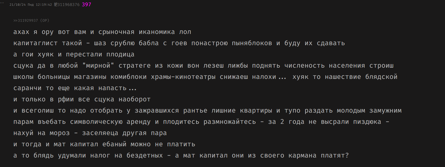 вы представьте чмонька заходит в тред и начинает всех скрывать вместо общения с нами ну знаете в каждой компании есть такой омеган молчун который стоит в стороне